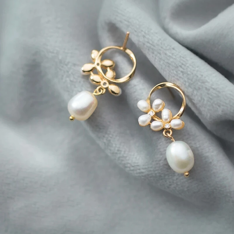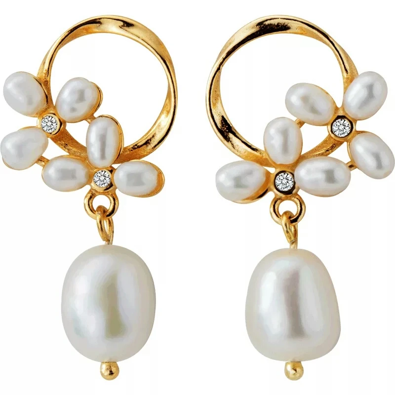 Размер серьги: длина серьги 2,4 см, ширина серьги 1,2 см. Ширина жемчуга-подвески 0,6 см, длина 0,8 см. Серьги Топ цветок ширина 1,2 см