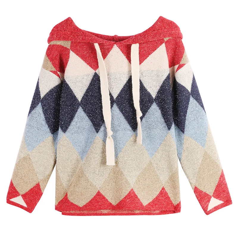 Loose Argyle Hat Pullover Sweater Woomen 2020 Spring Long Sleeve Student Knitted Female Женская одежда - купить