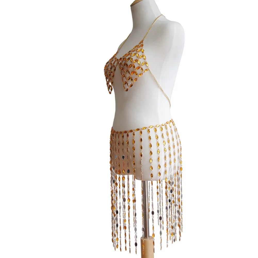 Boho Acrylic Yellow Top Beach Bikini Chains Bra Fashion Harness Charm Body Accessories Jewelry for Women and Girls Украшения и - купить