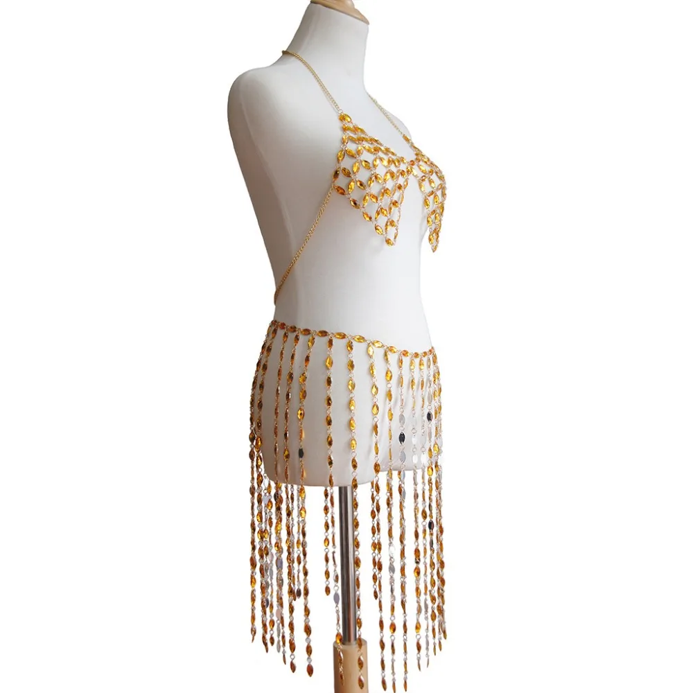 Отзывы о Boho Acrylic Yellow Top Beach Bikini Chains Bra Fashion Harness Charm Body Accessories Jewelry for Women and Girls Украшения и