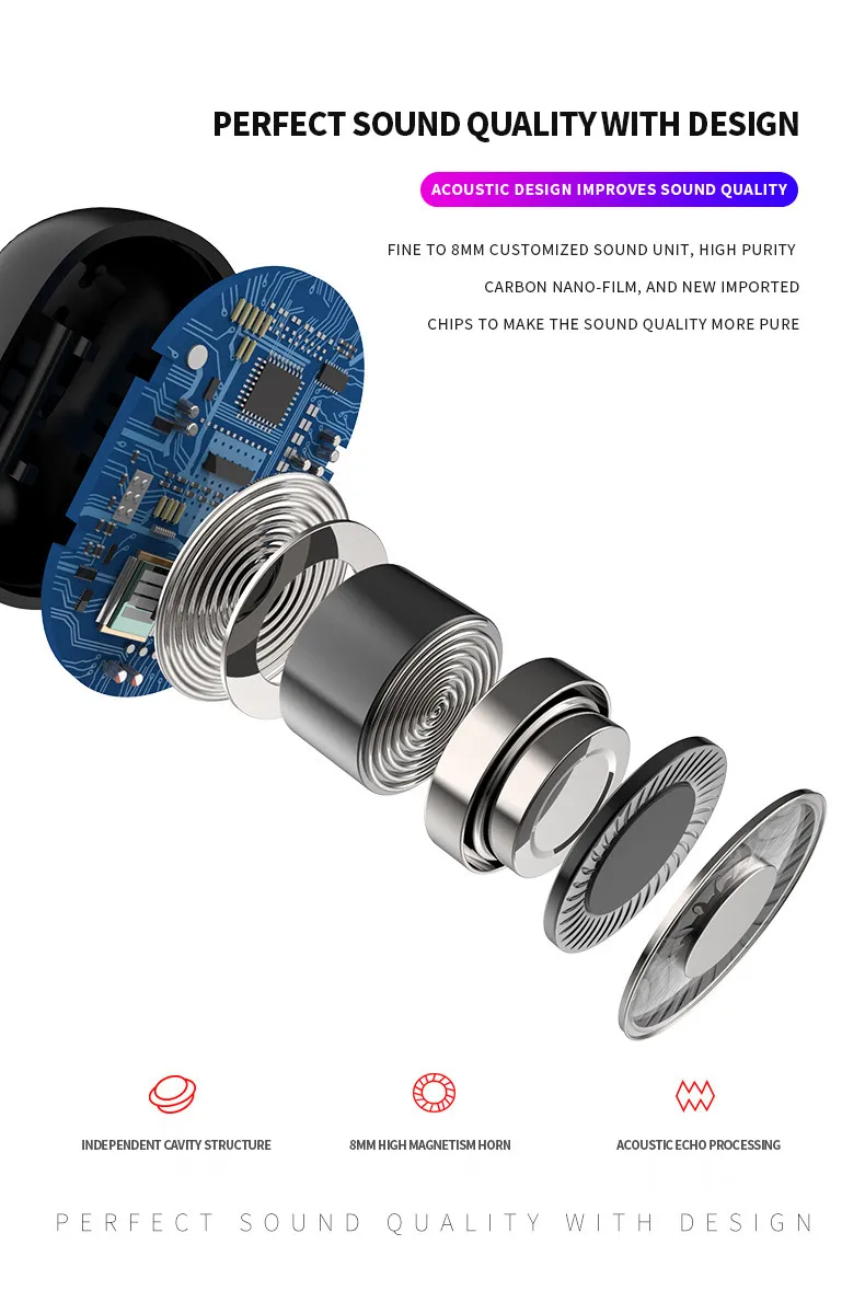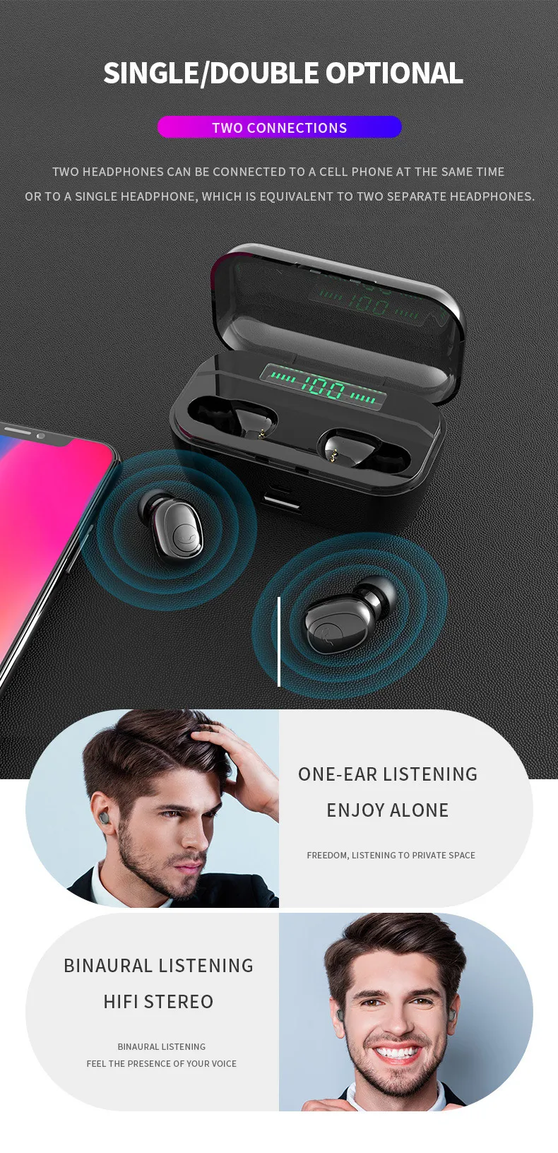 Дальность передачи: 10 метров Функция: дисплей питания, голосовое управление, функция вызова, Поддержка музыки, Многоточечное соединение Протокол Bluetooth: Bluetooth 5,0 Канал: стерео Порядок использования: наушники-вкладыши Цвет: одно ухо черный, одно ухо белый, черные уши, белые уши