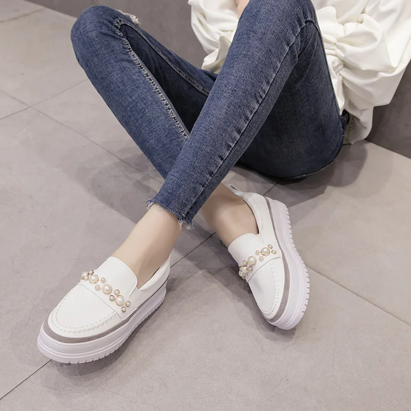 Женские парусиновые туфли высокого качества с жемчугом нескользящая обувь на - купить