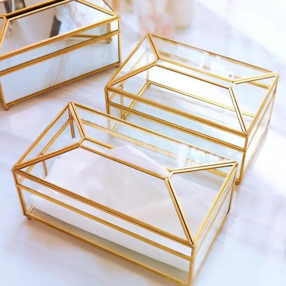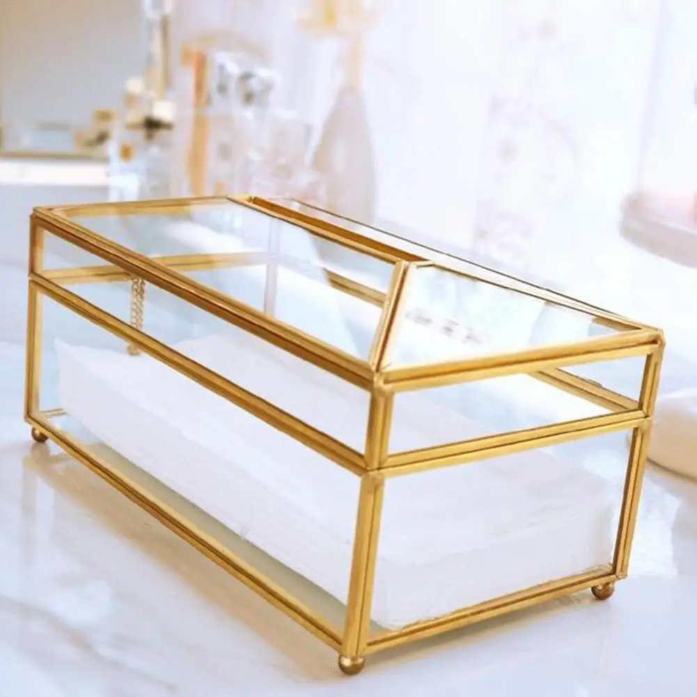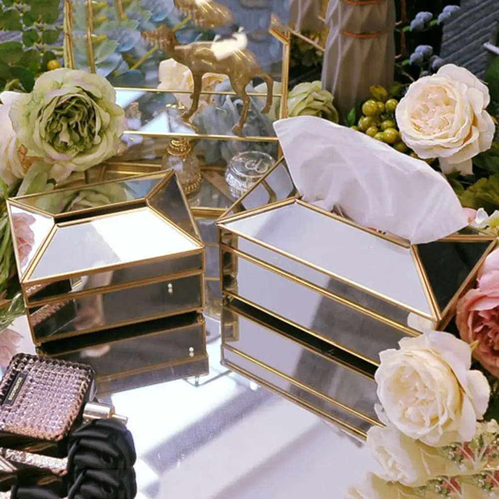 3. Золотая стеклянная зеркальная коробка для салфеток, Высококачественная стеклянная косметическая бумажная коробка для хранения полотенец с зеркальным покрытием, лоток для салфеток