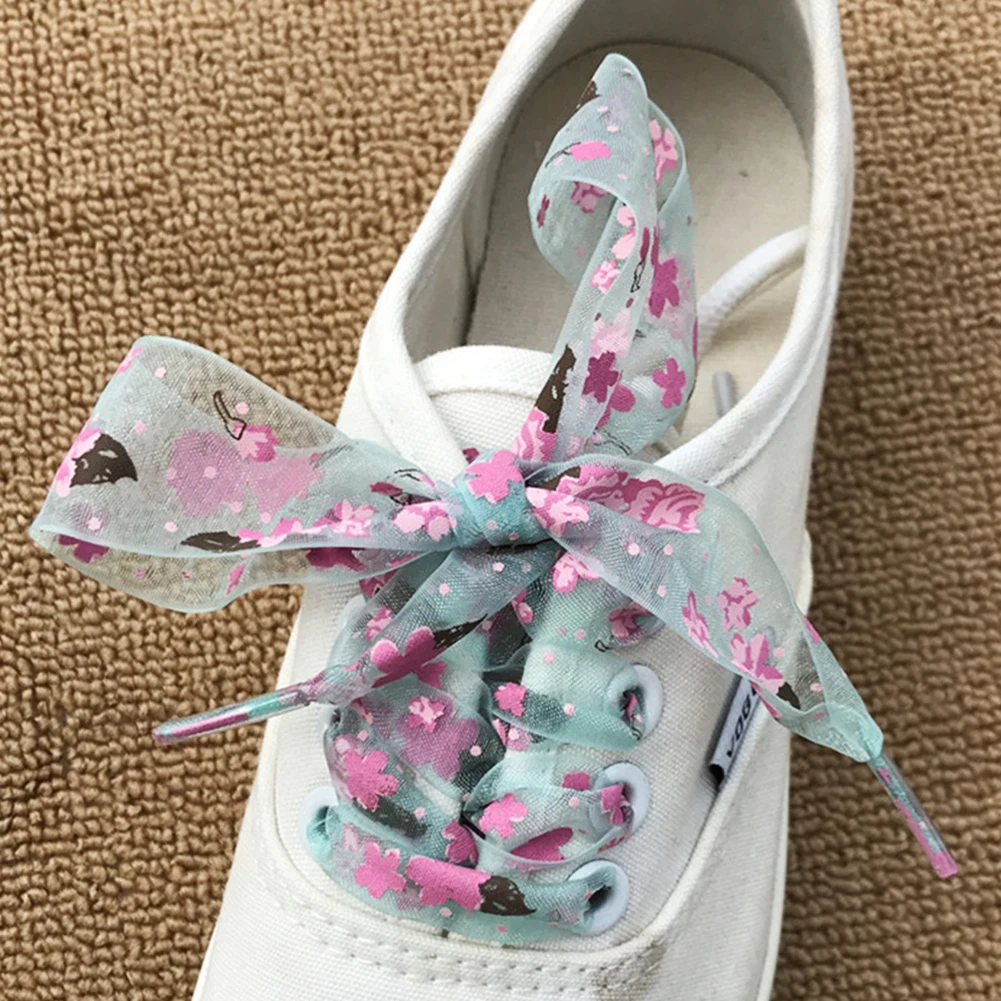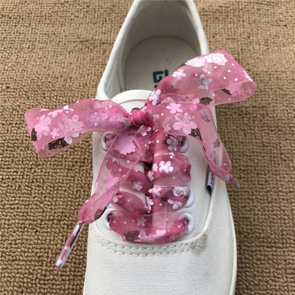 1 пара; широкие Блестящие Кроссовки из органзы с цветочным принтом; повседневные шнурки для обуви