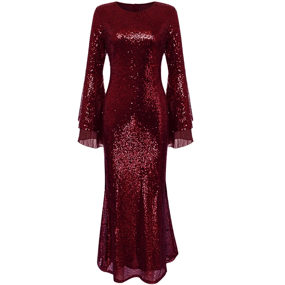 Купить BIUBIU вечернее длинное платье для женщин 2019 осеннее облегающее с блестками