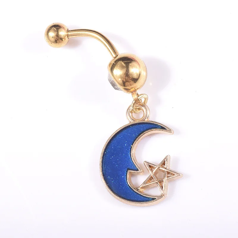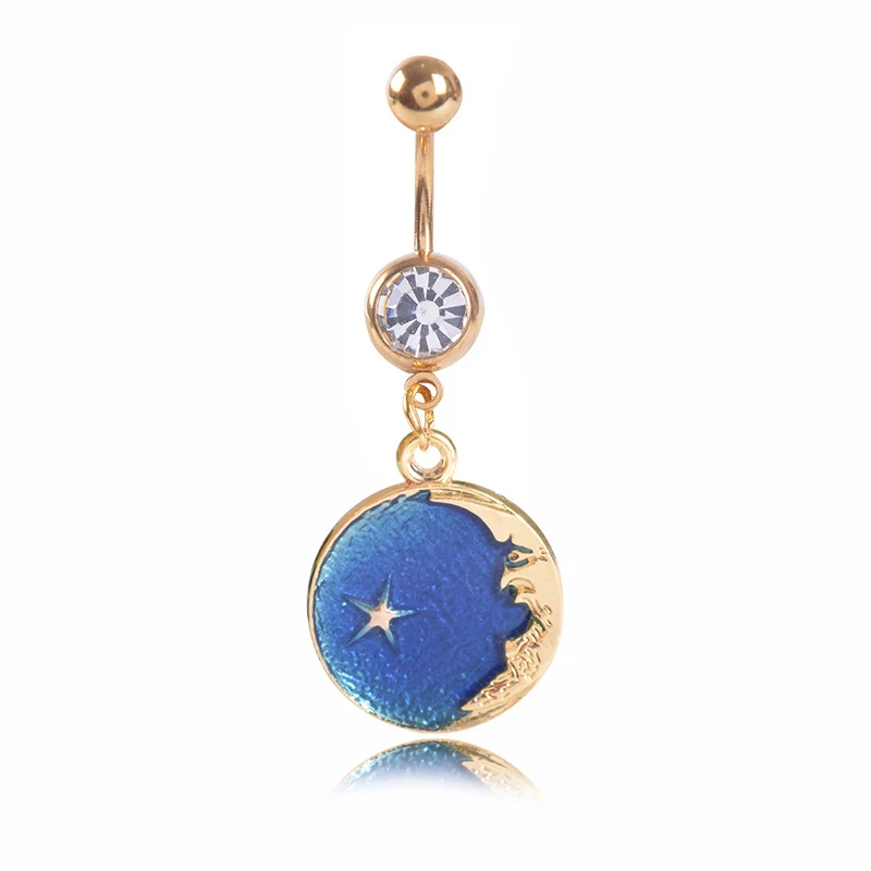 2019 Романтика голубое звездное небо Луна Звезда Кулон Кольцо-пирсинг для пупка - купить