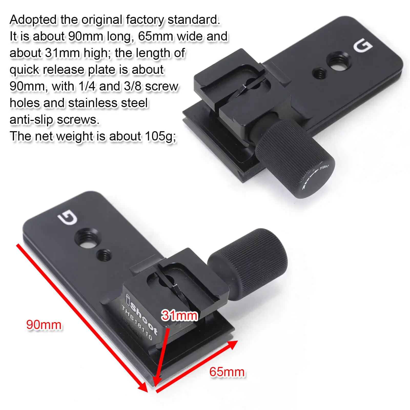 | 1. Сменное кольцо для крепления штатива объектива изготовлено из авиационного алюминия, ЧПУ точно обработан, дизайн для снижения веса, полированный и анодированный поверхность, с винтом из нержавеющей стали; 2. Сменное основание для воротника объектива соответствует оригинальному заводскому стандарту. Длина около 90 мм, ширина 65 мм и высота около 31 мм; Длина быстроразъемной пластины составляет около 90 мм, с резьбовыми отверстиями 1/4 и 3/8 и противоскользящими винтами из нержавеющей стали. Вес нетто составляет около 105 г; 3. Нижняя БЫСТРОРАЗЪЕМНАЯ пластина соответствует стандарту, совместима с RRS / ARCA-SWISS / PMG / WIMBERLEY / MARKINS / PHOTOCLAM / SUNWAYFOTO / BENRO / SIRUI / MARSACE / ISHOOT шаровой головкой штатива Arca fit, подходит для iShoot IS-JZ50 / IS-JZ64 / IS-QJ58 / IS-QJ64-FD / IS-Z60BK / IS-JZ70MFT / IS-JZ80BK / IS-JZ85/. |