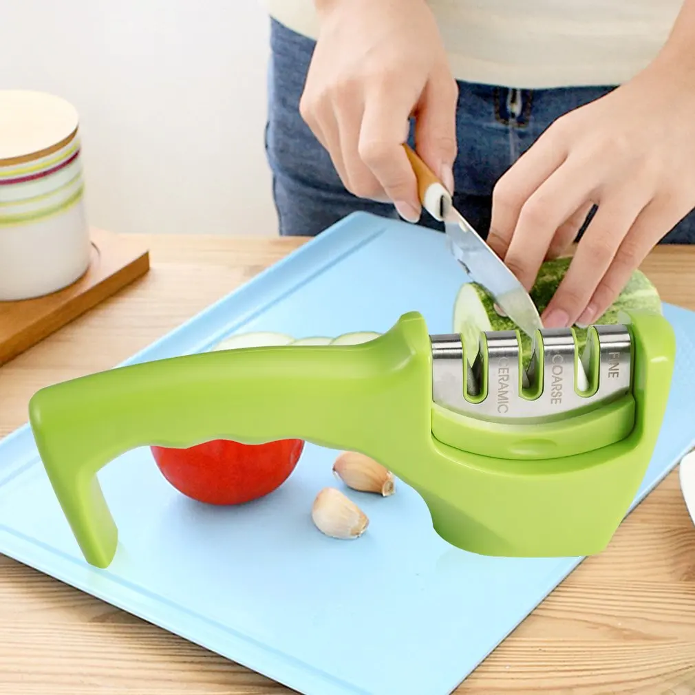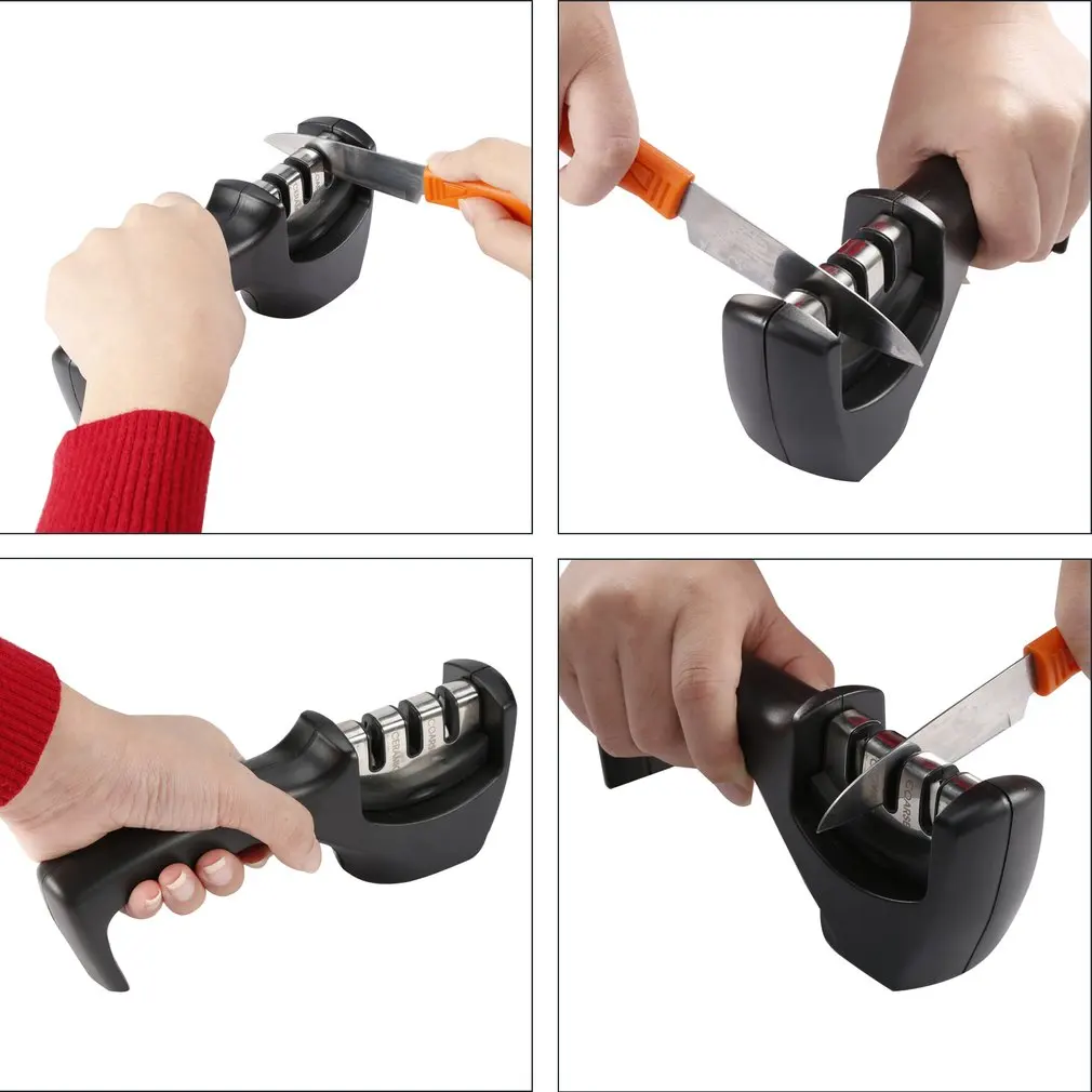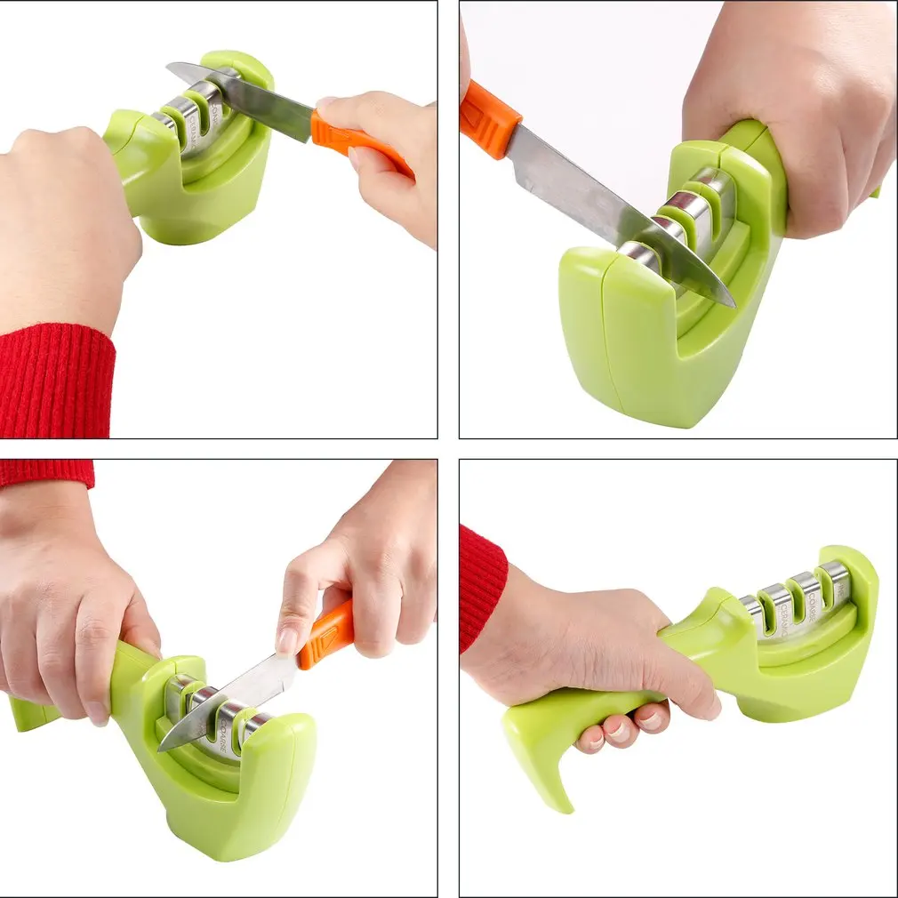 Эргономичная простая в использовании Ручка безопасности из нержавеющей стали 3 лезвия кухонный нож точило для профессионального шеф-повара