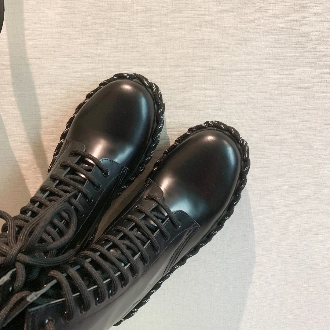 Отзывы о Hot Zapatos De Mujer Shoes Woman Boots Leather Motorcycle Paltform Lace-up Med Heels Rome Chelsea Обувь
