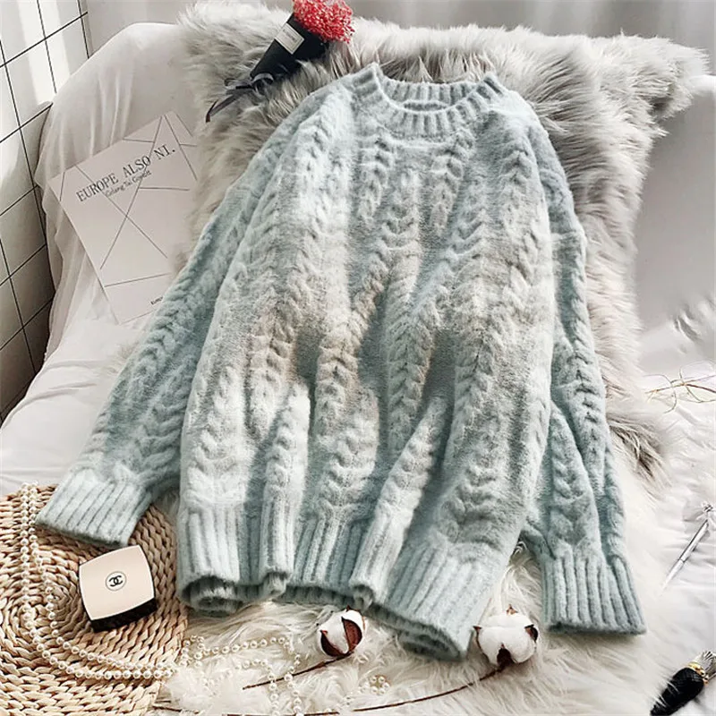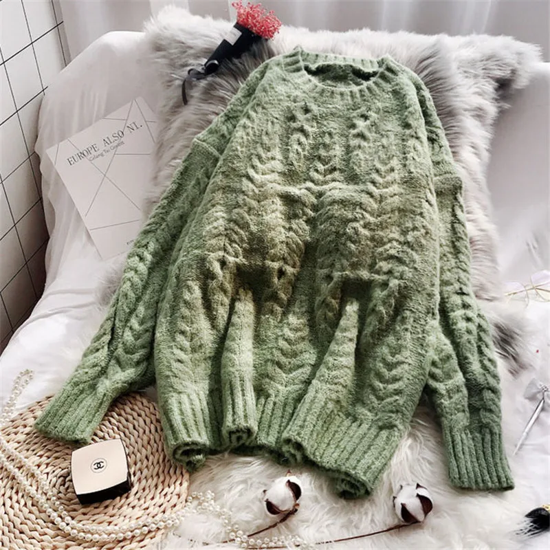 Women Winter Loose Elegant Knitted Stretch Sweaters Autumn Long Sleeve Casual Warm Female Plus Size O-Neck Pullover Женская одежда - купить