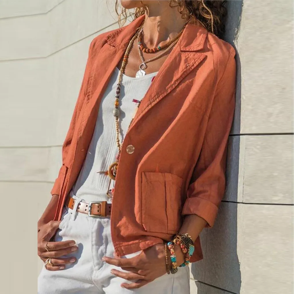 Модные женские свободные с длинным рукавом сплошной цвет хлопок и лен Кардиган Топы пальто