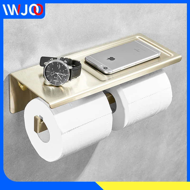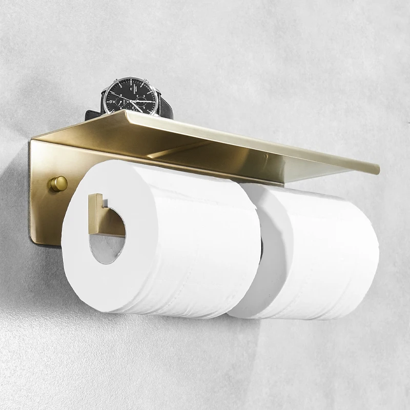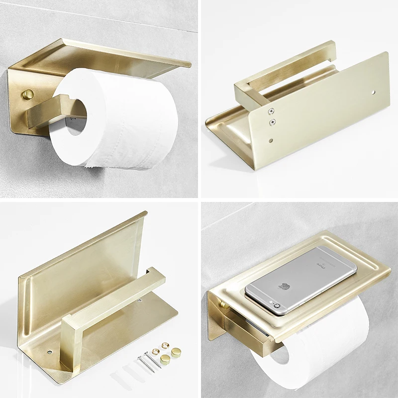 Купить Держатель для туалетной бумаги из нержавеющей стали золотистый с полкой