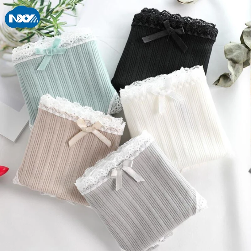 5 шт./упак. кружевные хлопковые трусы черные женские Однотонные трусы-боксеры, нижнее белье, Размеры м с низкой посадкой и бантом для девочек, нижнее белье сексуальное Culotte Femme