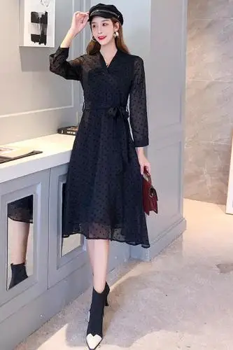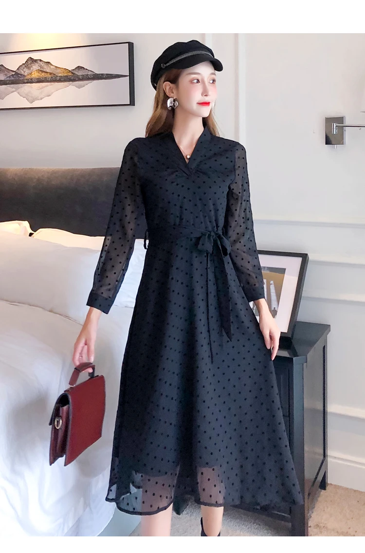 Купить Платье женское шифоновое с длинным рукавом черное прозрачное элегантное