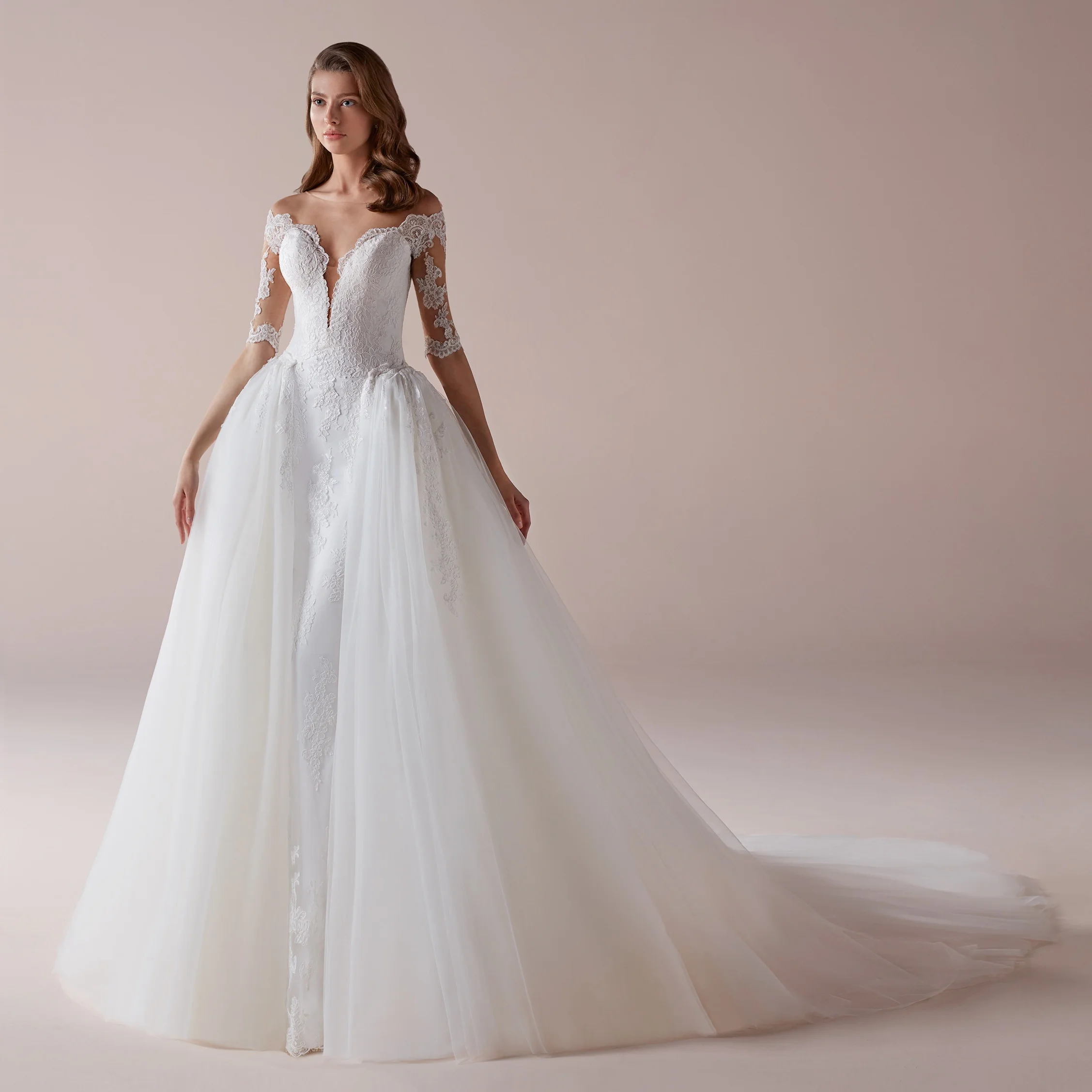 Купить 2 в 1 свадебное платье со съемной юбкой невесты съемным шлейфом Superbweddingdress |