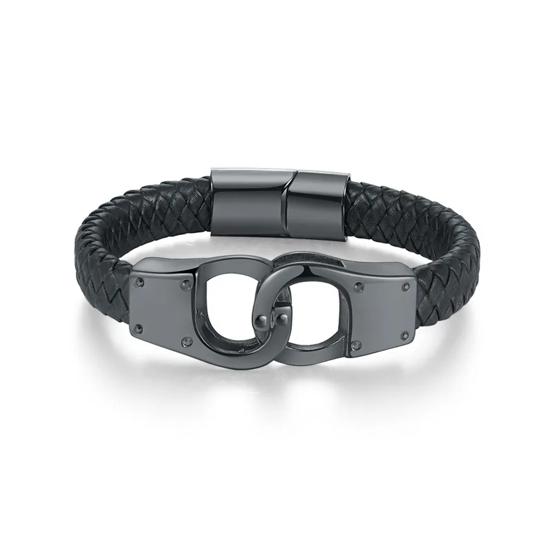 Новый браслет из натуральной кожи титановая сталь странные наручники Мужской - купить