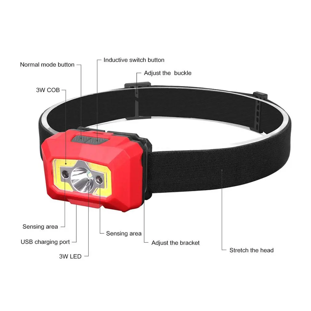 Многофункциональные сенсорные фары дальнего света, ближнего света, два в одном, Usb зарядка, водонепроницаемые блики, рыболовные светодиодные фары