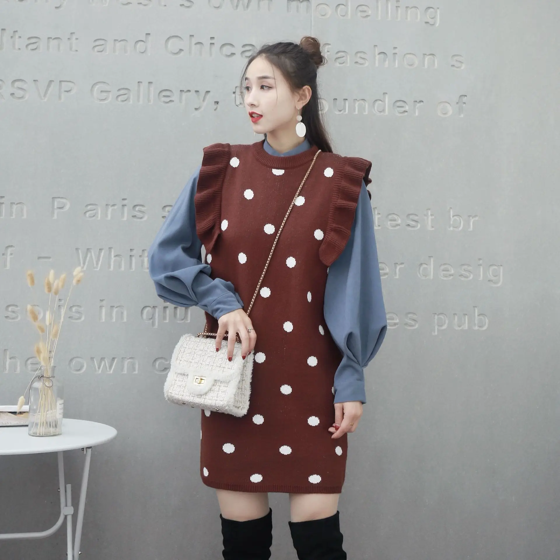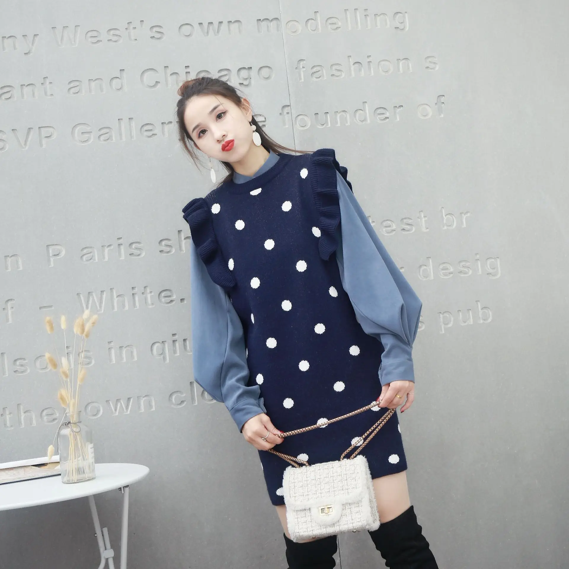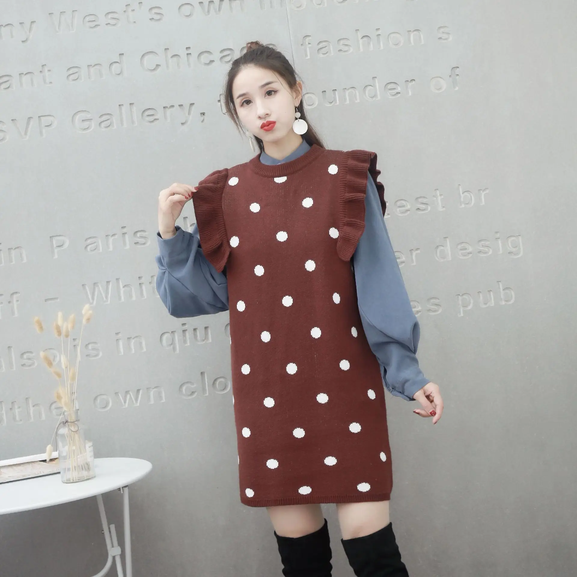 Отзывы о Свитер женский пуловер жилет с волнистым принтом оборки осень-зима длинный