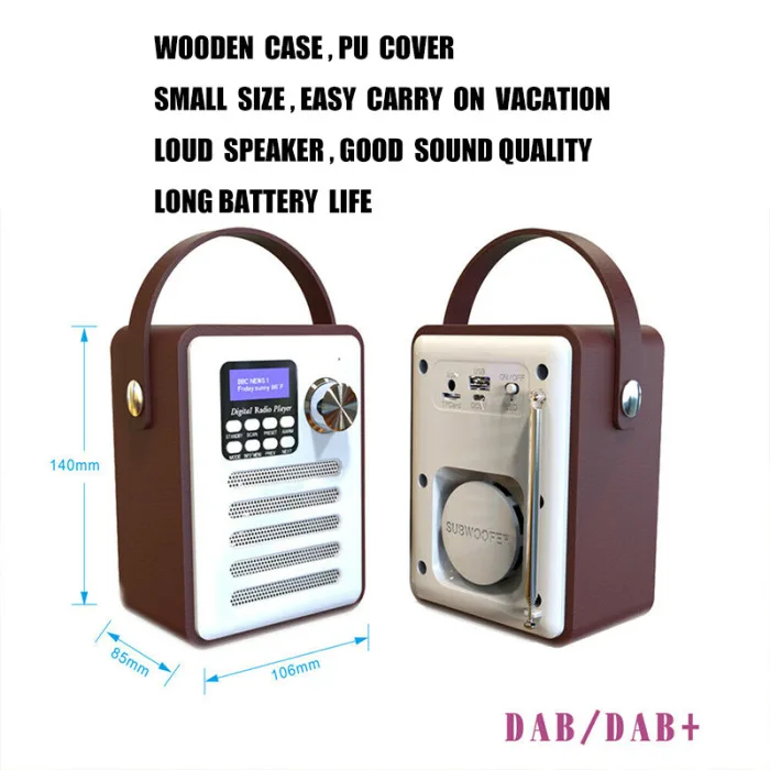 Этот продукт является многофункциональным DAB/DAB + цифровым радио для домашнего использования. Он также имеет множество функций, таких как прием FM, аудио Bluetooth, воспроизведение музыки в формате MP3 u-диска/tf-карты, внешний доступ к источнику звука и так далее. Использование деревянной независимой звуковой камеры, более выдающийся звуковой эффект.