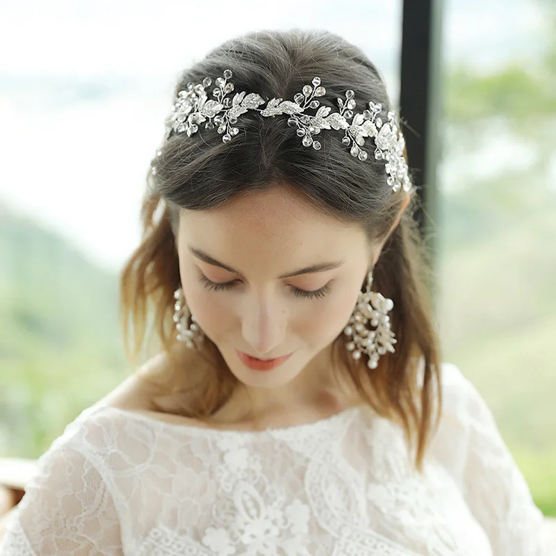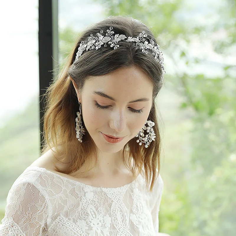Wedding Headband Bridal Hair Accessories Rose Gold Leaf Rhinestone Crystal Headband Silver Metal Tiara Headband Women Jewelry Headband Length About 32 cm Headband Width About 6.5 cm