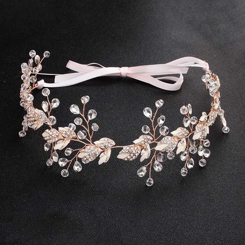 Wedding Headband Bridal Hair Accessories Rose Gold Leaf Rhinestone Crystal Metal Tiara Women Jewelry Украшения и аксессуары - купить