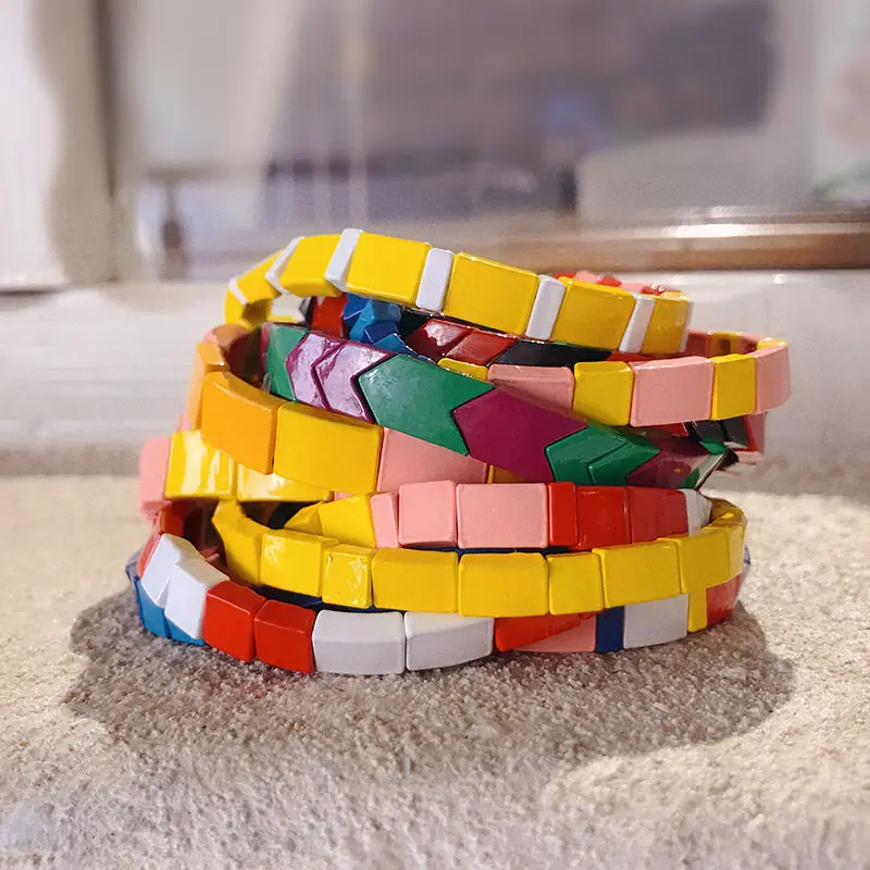 Flatfoosie Fashion Friendship Bracelet For Women Homme Enamel Tile Painted Elastic Brazalete Mujer Bohemian Style Accessories Украшения и - купить