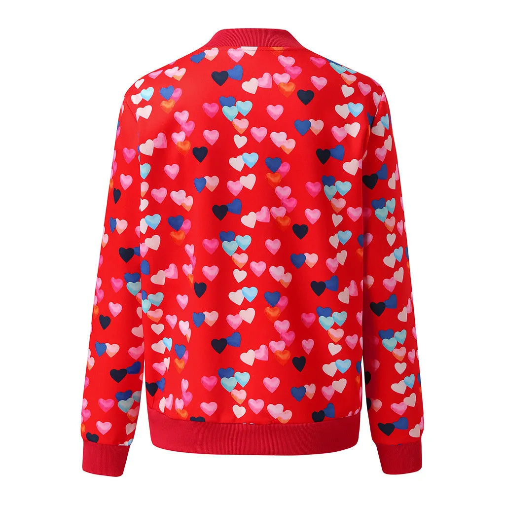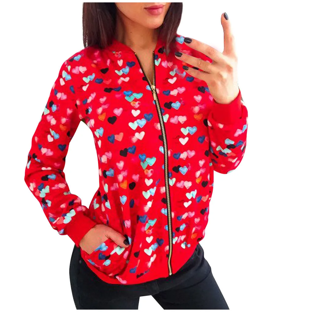 Купить Курточка бомбер Для женщин сердце печати молнии на шнуровке в стиле ретро пальто