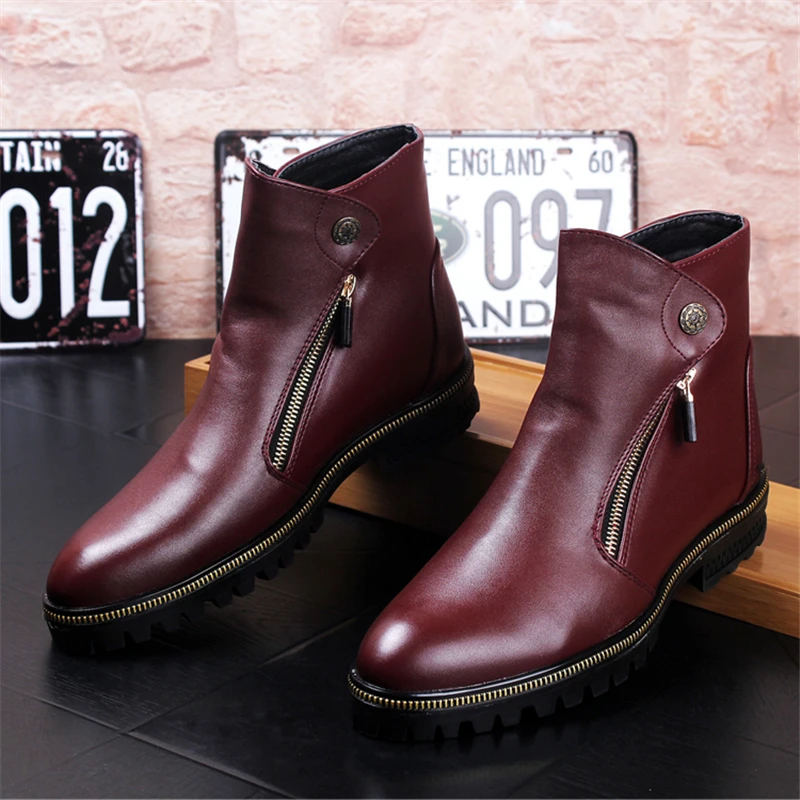 Отзывы о Ботинки мужские зимние кожаные бархатные теплые модные Челси черные красные