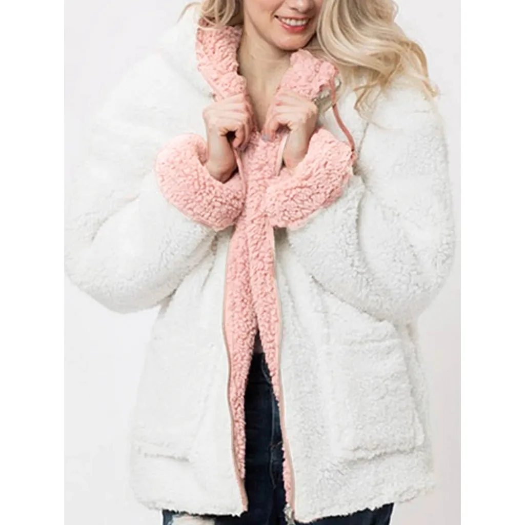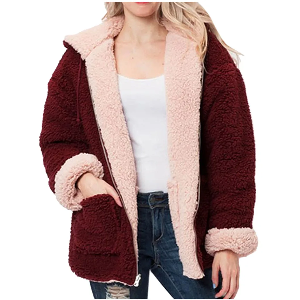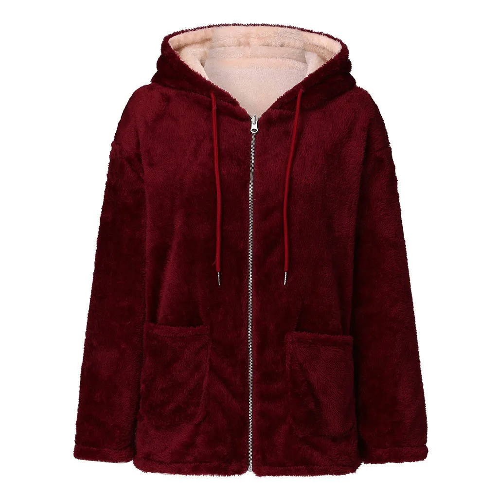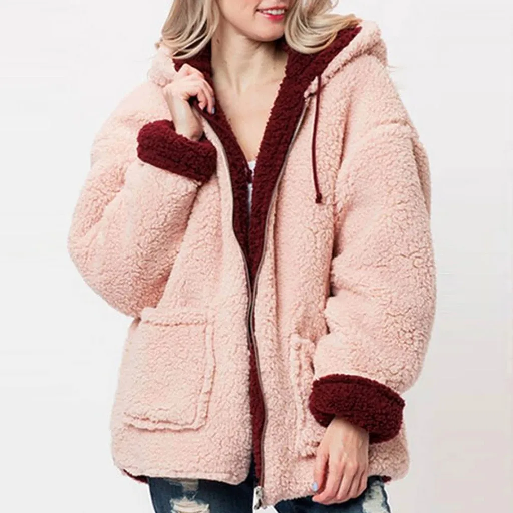 Женские модные однотонные двусторонние куртки из искусственного меха с капюшоном и плюшевым карманом на молнии