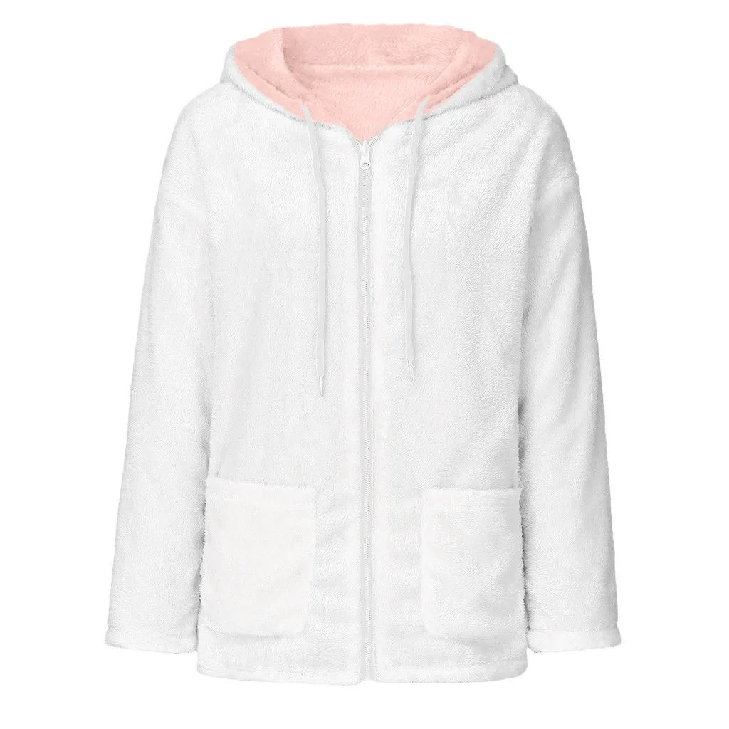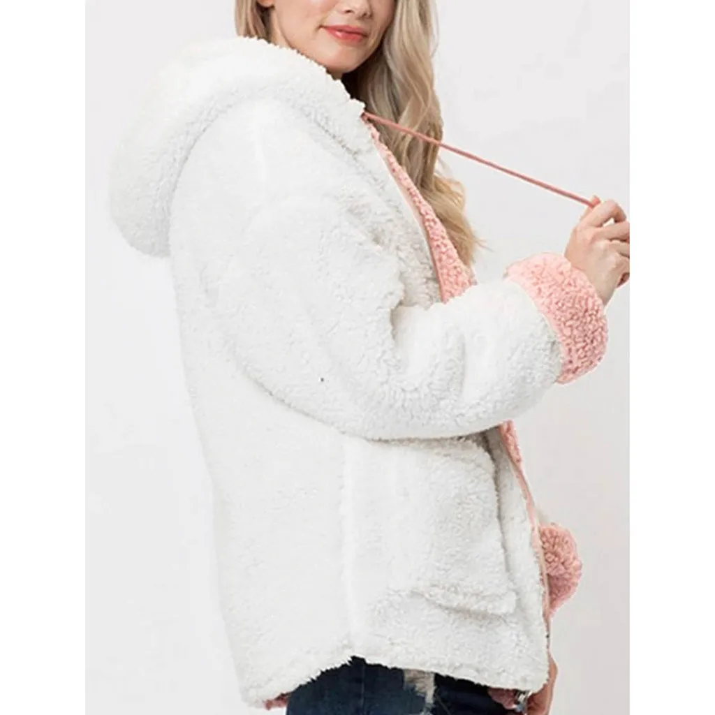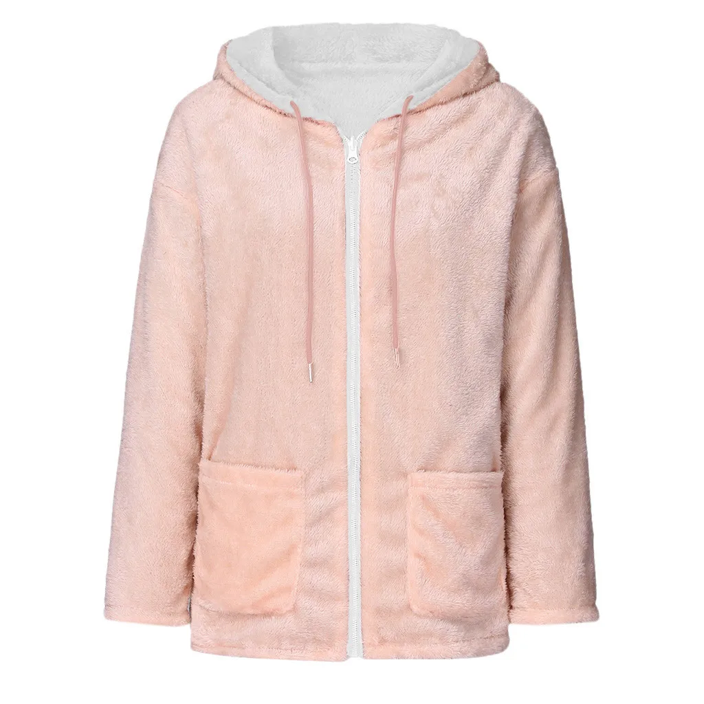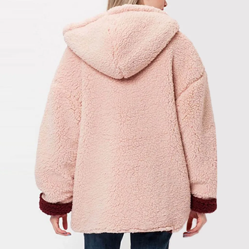 Женские модные однотонные двусторонние куртки из искусственного меха с капюшоном и плюшевым карманом на молнии
