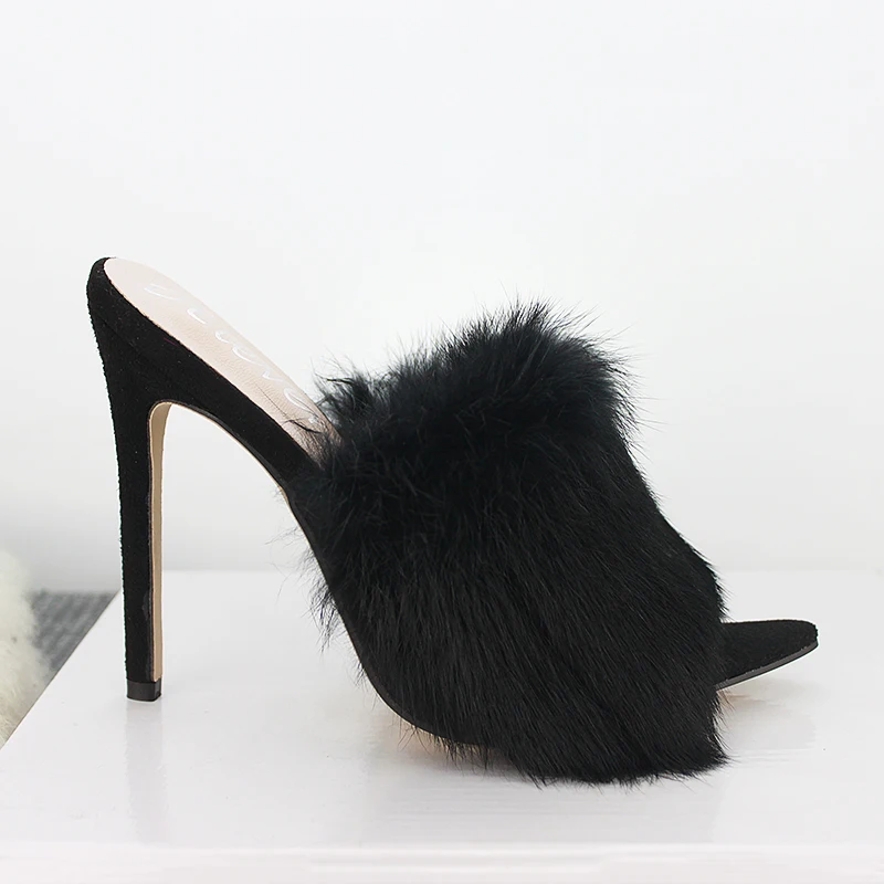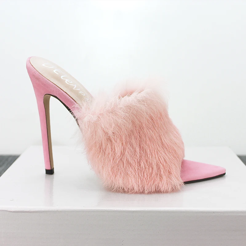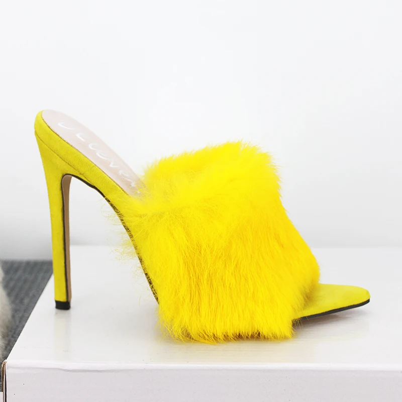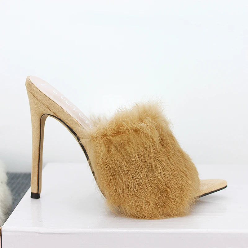 Новинка 2020 года роскошные европейские меховые шлепанцы на очень высоком тонком - купить