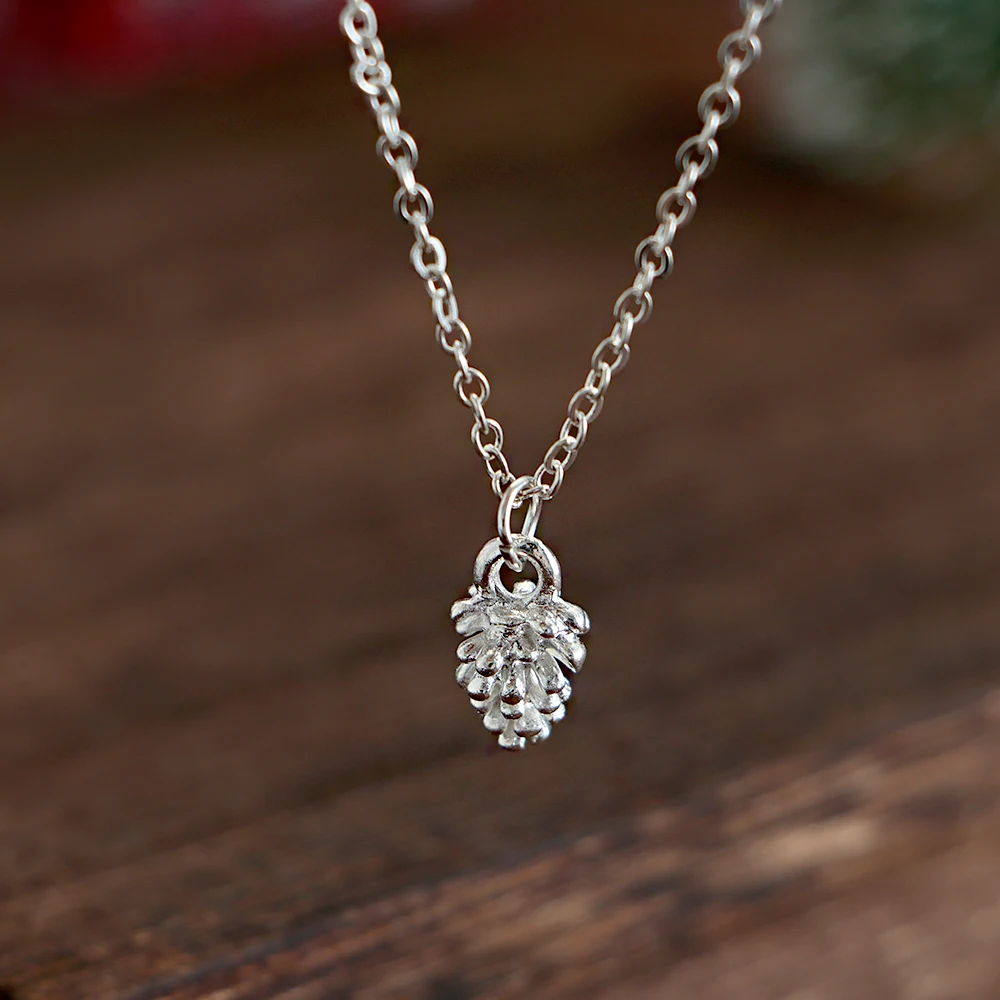Купить Крошечный милый желудь ожерелье Еловая шишка минимальное сосновое с украшениями