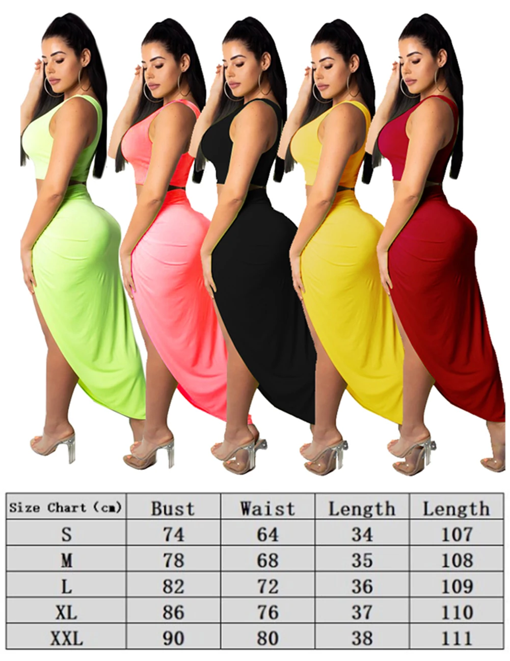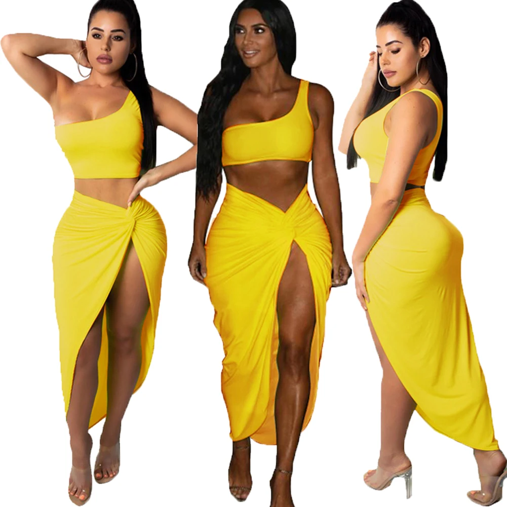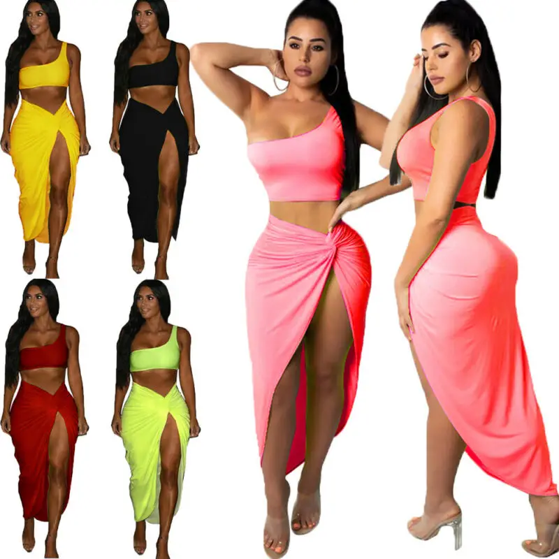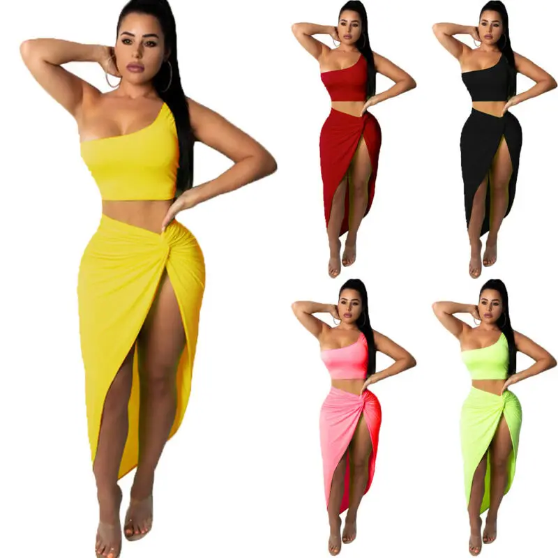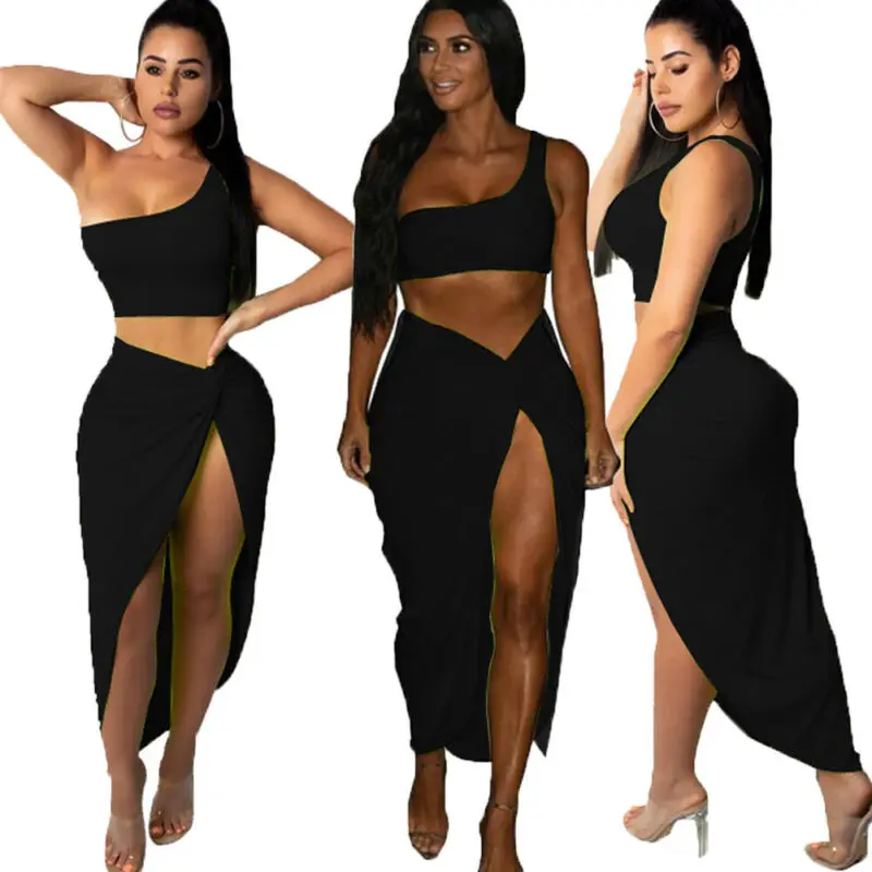Купить Комплект из двух предметов на одно плечо укороченный Топ Длинные Разделение юбка
