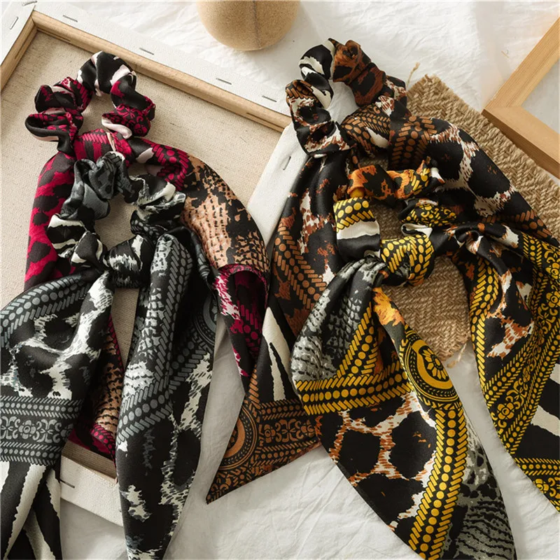 Женские резинки для волос OPPOHERE, винтажные резинки с цветочным принтом в богемном стиле, маленькие резинки для волос с бантом и хвостом