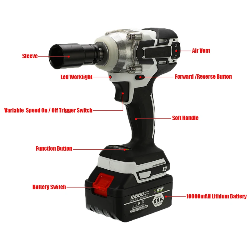 5. Легко переключаться между передним и обратным режимом для затягивания или ослабления гаек и болтов