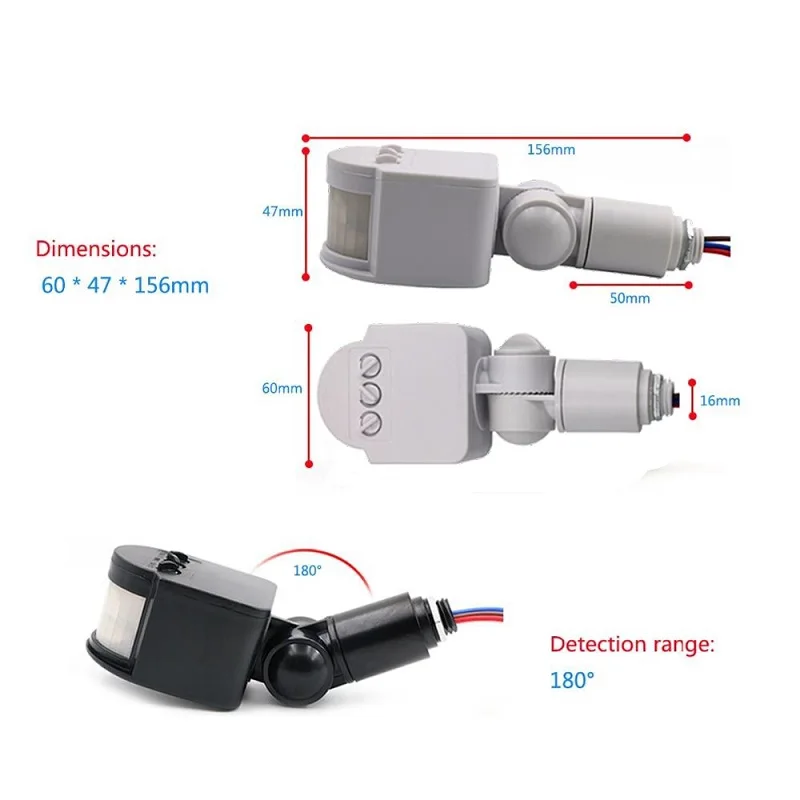 100% абсолютно новый Автоматический, удобный, безопасный и практичный. Детектор движения предназначен для внутреннего и наружного использования. С ИК-детектором движения ваши огни будут включаться автоматически, когда вы входите в комнату. Идеально подходит для вашего подвала, коридора, сарая или наружной стены. 110/220 В PIR инфракрасный датчик движения тела диапазон 4-6 м переключатель света лампы Описание продукта: Технические характеристики: Цвет: серый Предлагаем установить в отверстие диаметр: около 16 мм Диапазон зондирования: около 5-10 м Время задержки: около 45 s Угол обзора: 180 ° Рабочее напряжение: серый: 85-265 В переменного тока/12 В постоянного тока Мощность: ≤300W Рабочая температура:-10-40 ℃ Посылка включает в себя: 1 * инфракрасный свет Подходит для: