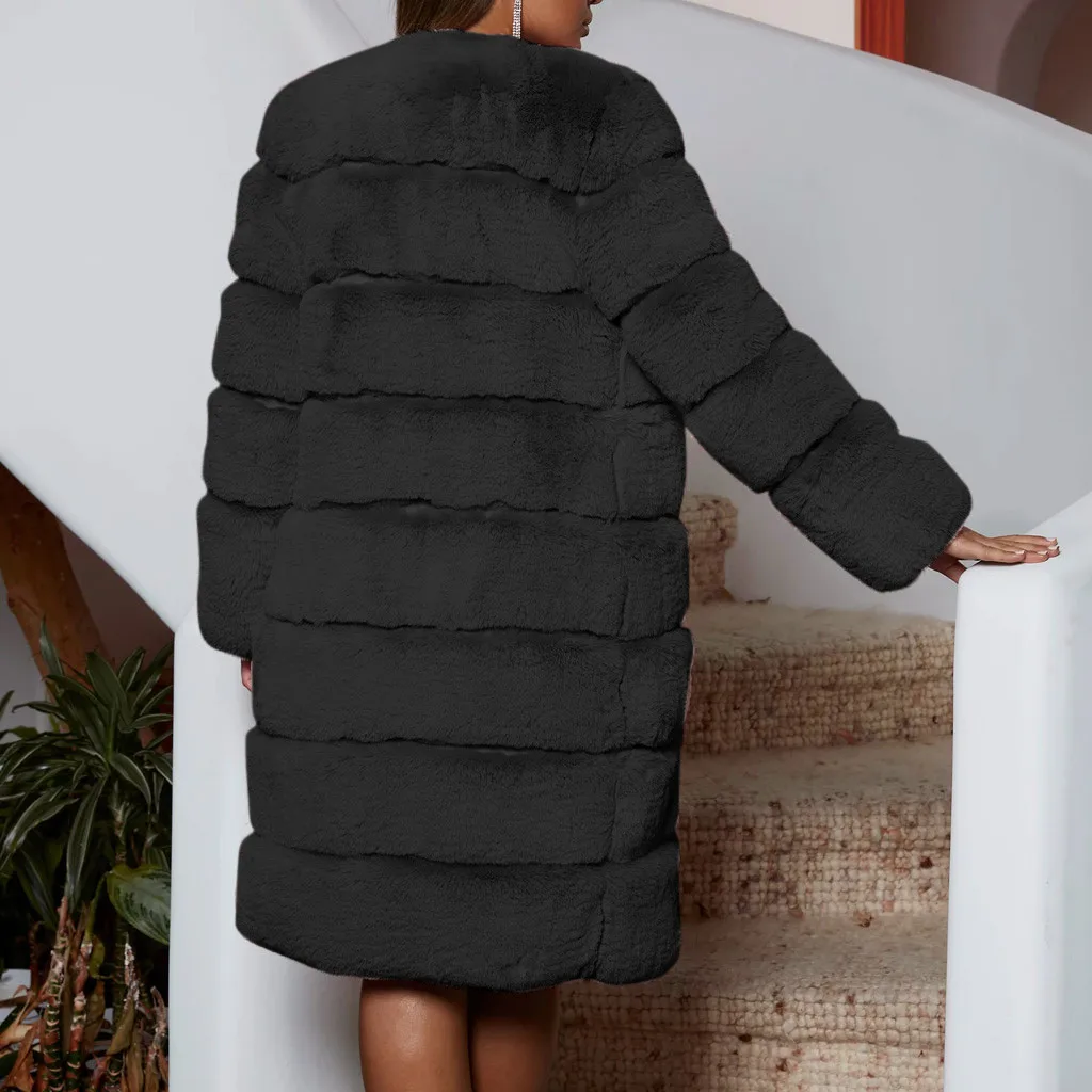 Купить Черная Толстая теплая меховая куртка с длинным рукавом и круглым вырезом зимняя