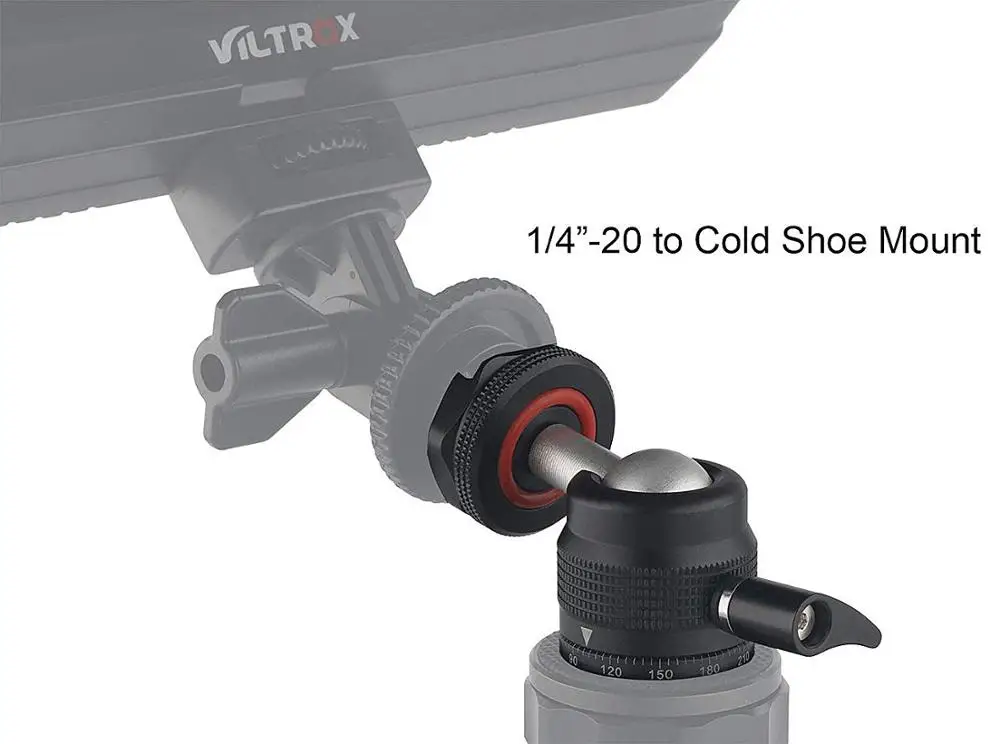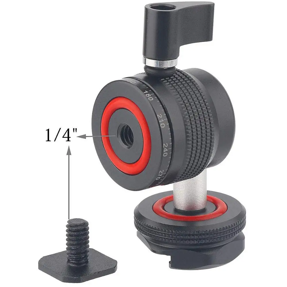 С помощью этой шаровой головки удерживайте светодиодный светильник, внешний монитор, микрофон, диктофон и т. д. Вы сможете легко установить этот адаптер к или кино буровой установки (с помощью 1,4 дюймовой болтовой), или на горячий башмак камеры.