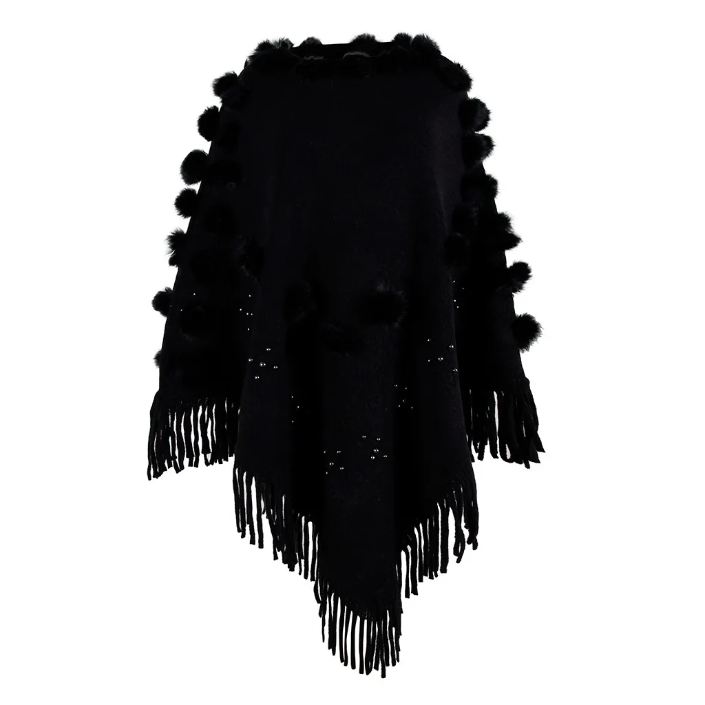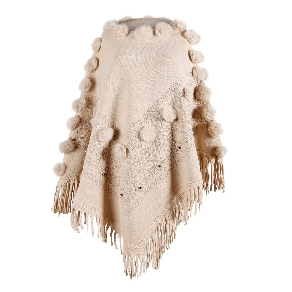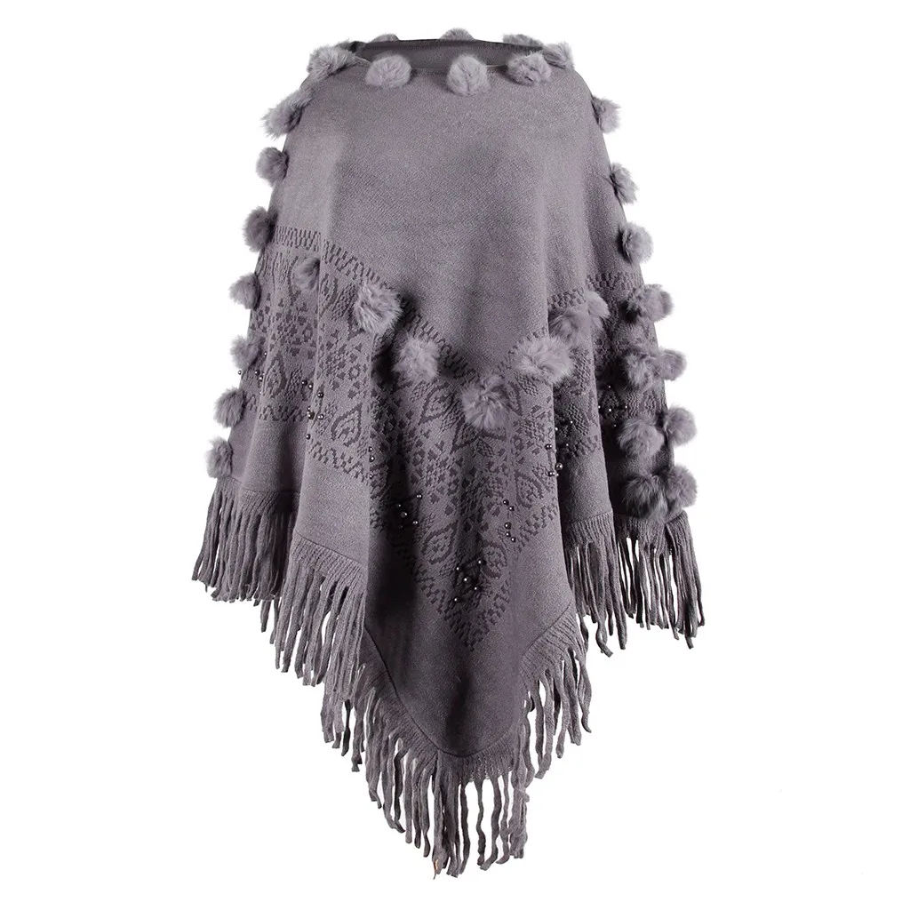 Женская накидка с круглым вырезом и кисточками, свободная шаль, кардиган, свитер, пальто