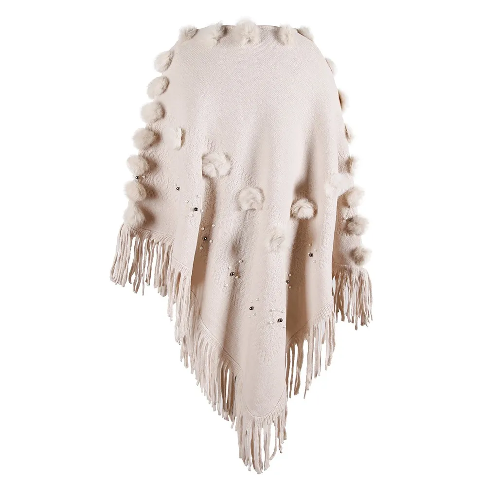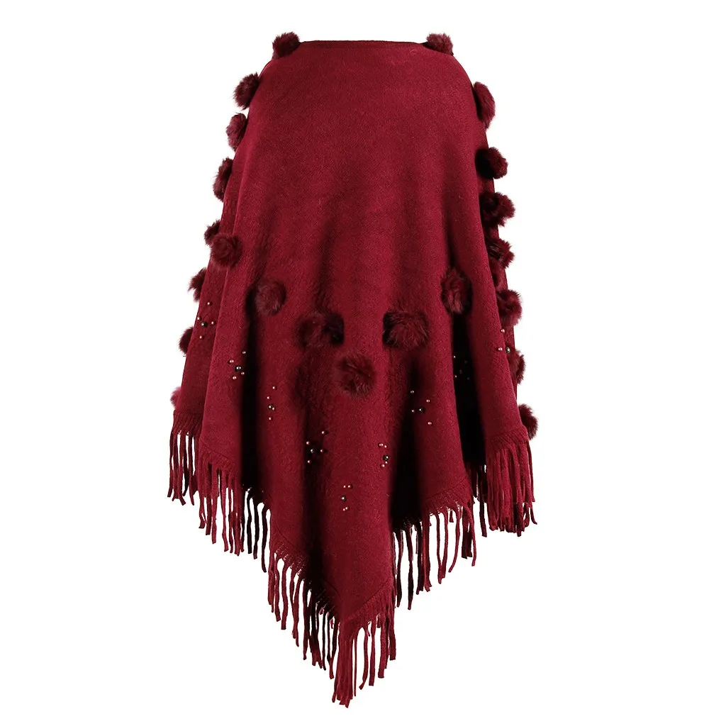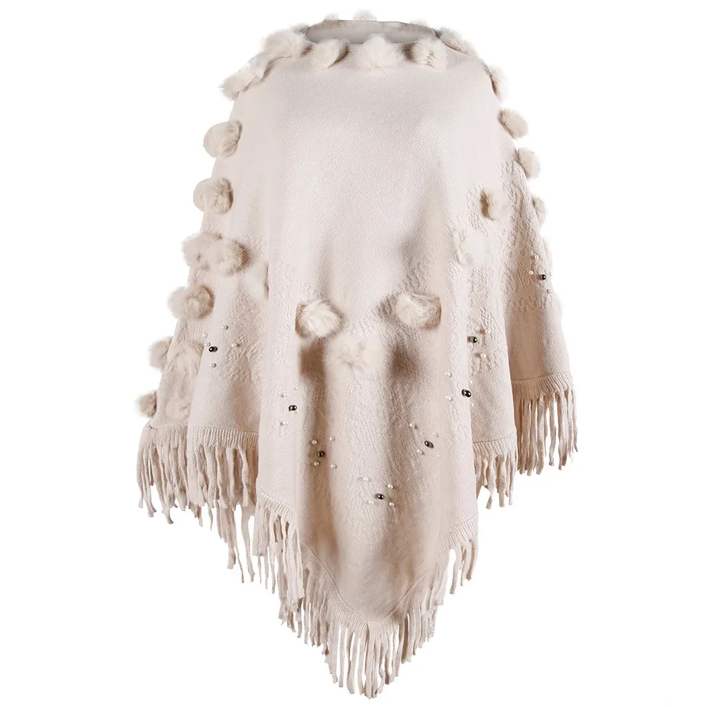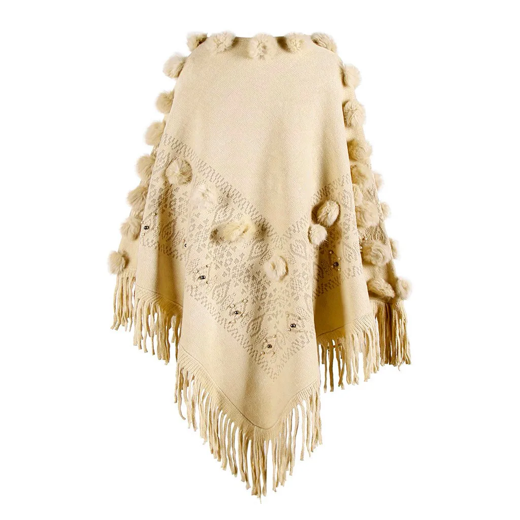 Женская накидка с круглым вырезом и кисточками, свободная шаль, кардиган, свитер, пальто
