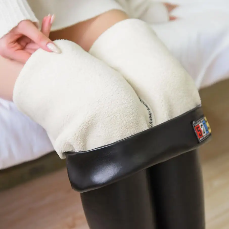 2021 Black Leather Warm Pants Winter Skinny Thick Velvet Casual Wool Fleece Trousers Lambskin Cashmere For Women Leggings Женская - купить