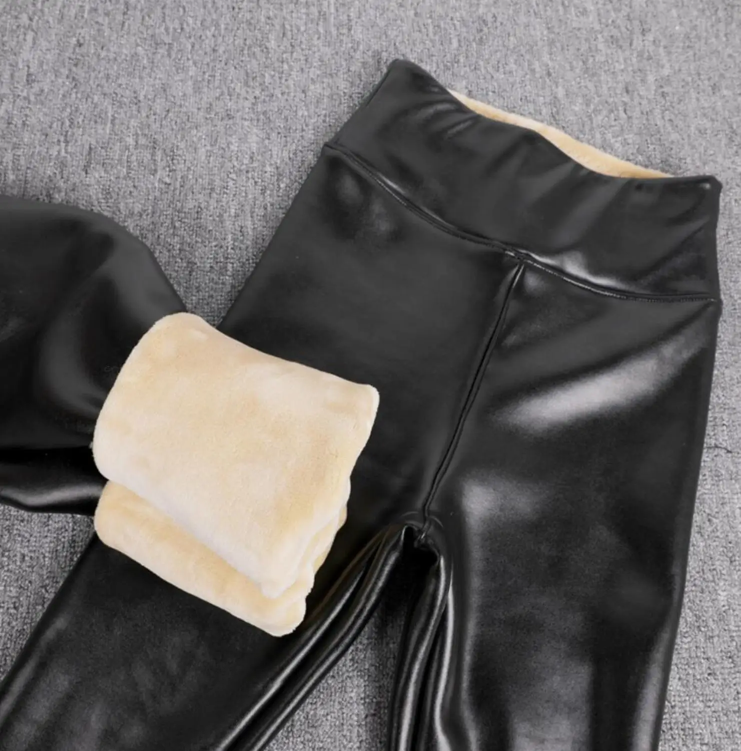 Отзывы о 2021 Black Leather Warm Pants Winter Skinny Thick Velvet Casual Wool Fleece Trousers Lambskin Cashmere For Women Leggings Женская