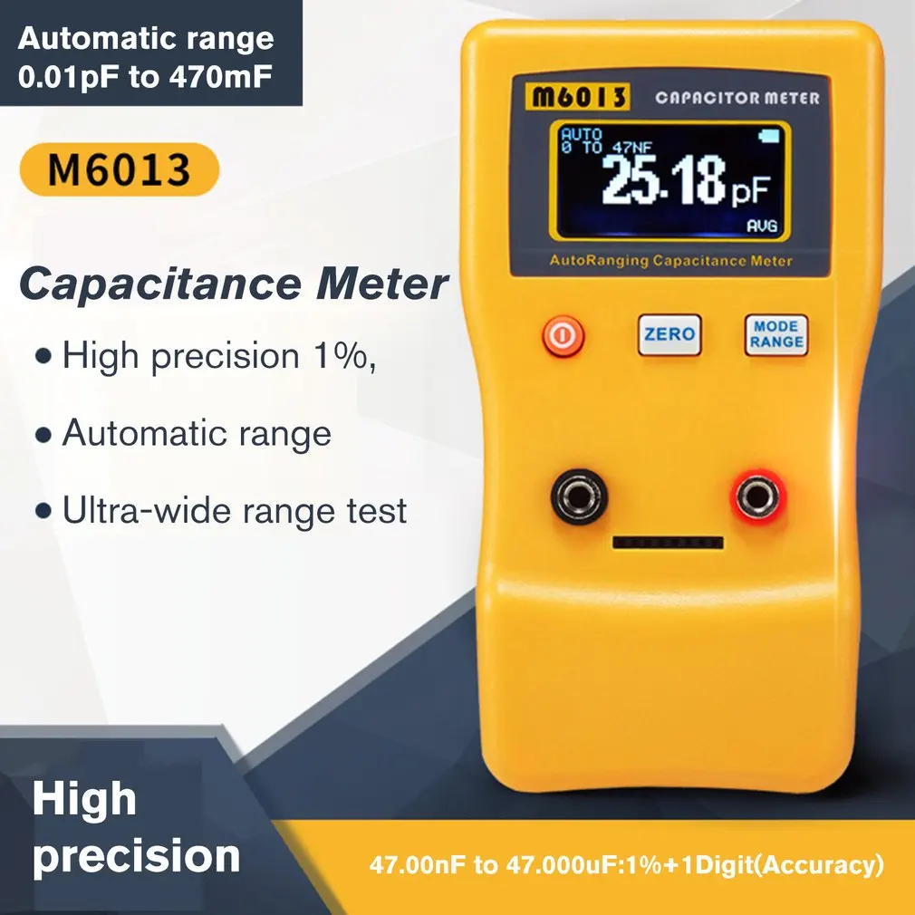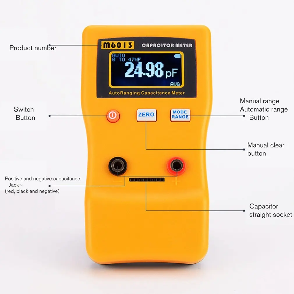 M6013 LCD Capacitor Meter Handheld Autoranging Digital Capacitance Measuring Meter Resistance Capacitor Tester
