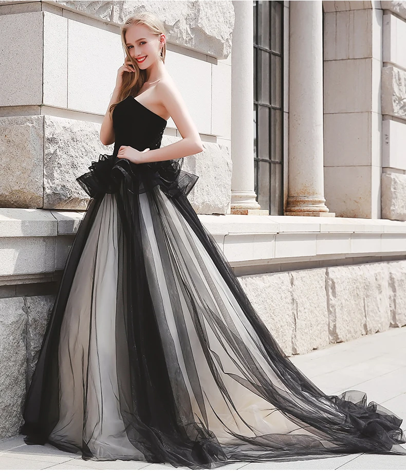 Отзывы о Черное бальное платье с открытыми плечами плиссированное фатиновое Пышное