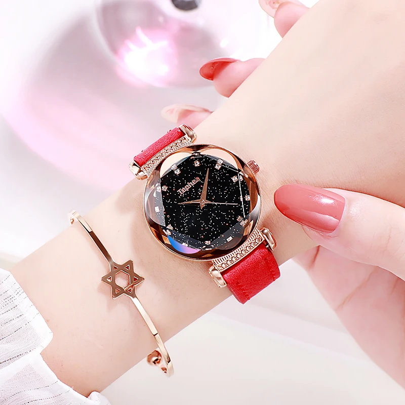 Купить Женские часы Новая мода Красный кожаный ремешок кварцевые наручные женские