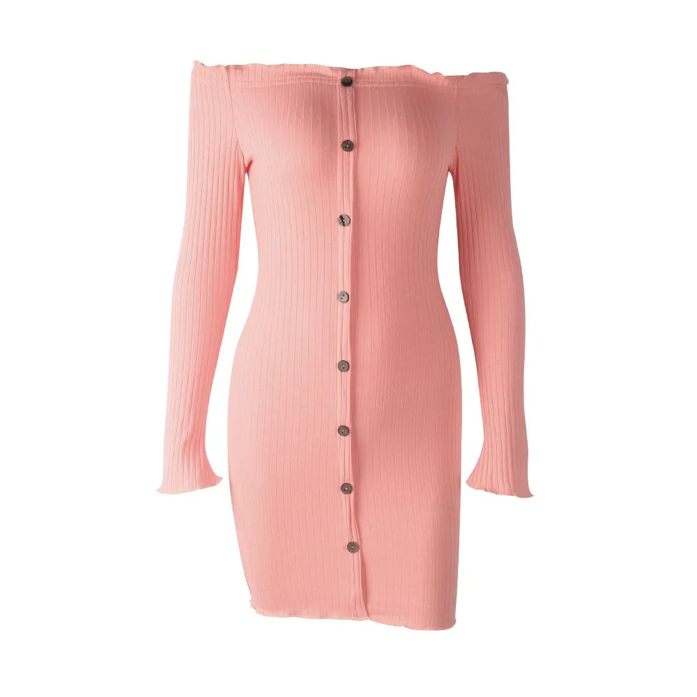 Осеннее женское платье модное с длинным рукавом одноцветные платья на пуговицах - купить