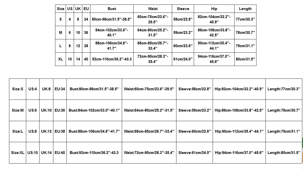 | Размер | Свяжитесь с нами | Великобритания | ЕС | Обхват груди | Обхват талии | Рукава | Обхват бедер | Длина |