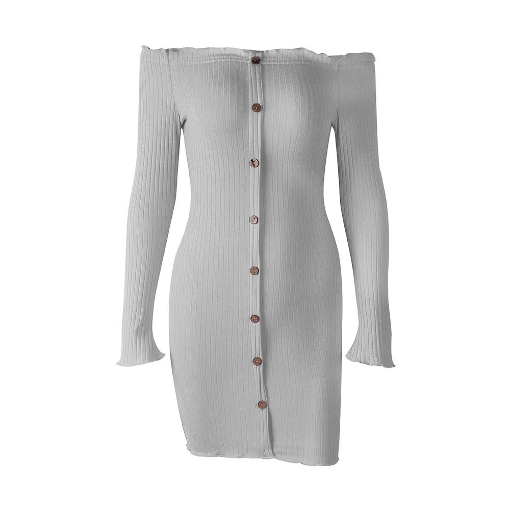 Купить Осеннее женское платье модное с длинным рукавом одноцветные платья на пуговицах