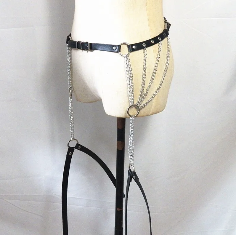 Колемье подвязки Панк готика кожа портупея ремни цепь регулируемый черное тело - купить