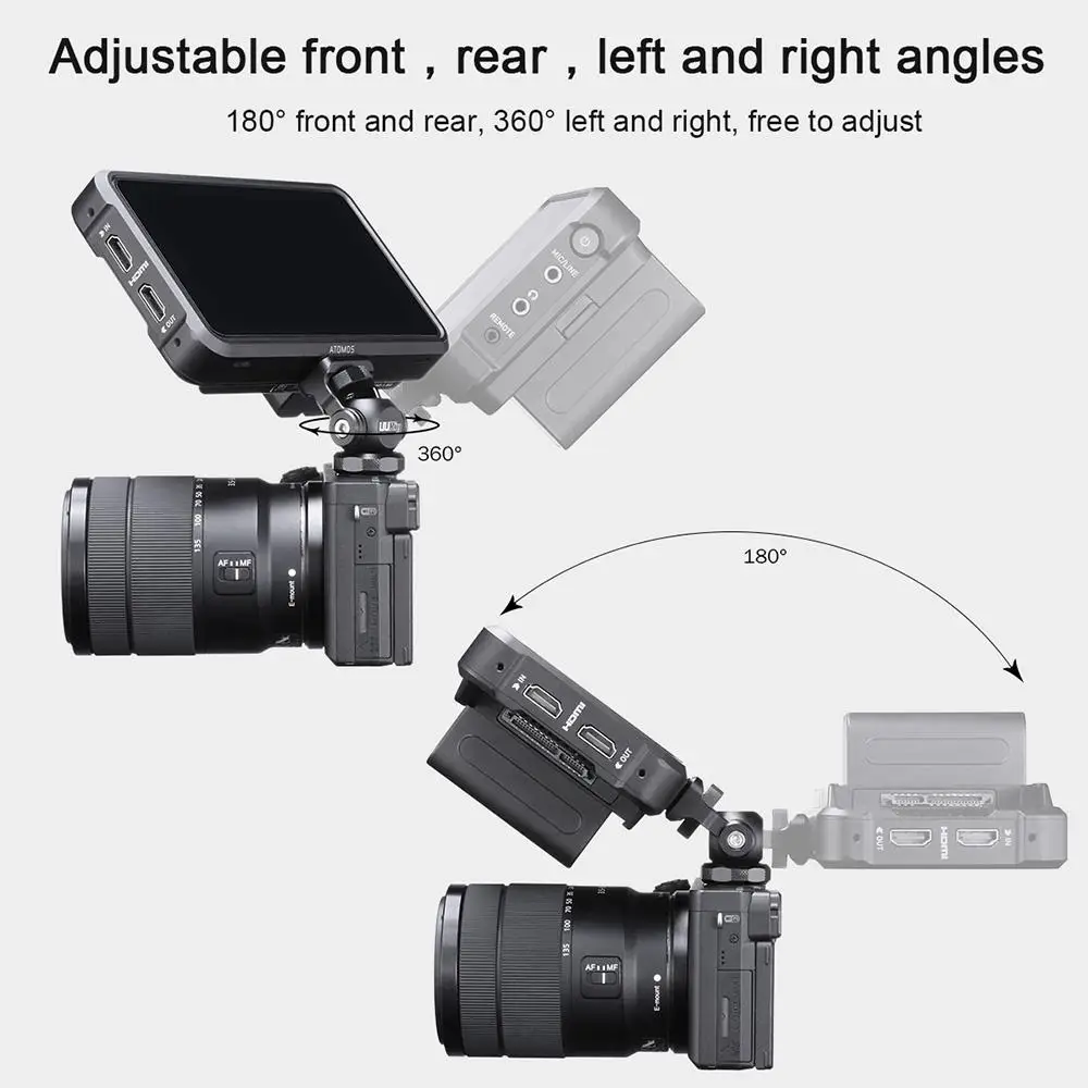 В дополнение к универсальному монитору с 1/4 отверстиями. Он также совместим с Arri позиционирующим отверстием монитора, замок плотнее и не отклоняется.